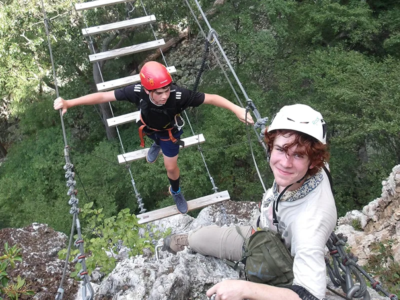 Fly through the treetops on a zipline or tackle the Via Ferrata bridge. Close the week with songs, laughter, and one last campfire.