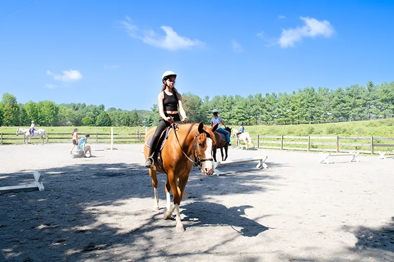 When campers aren’t riding, they’re soaking up everything camp has to offer, swimming in the pool or lake, playing large group games, creating art, performing skits, and gathering around the campfire for songs and s’mores.